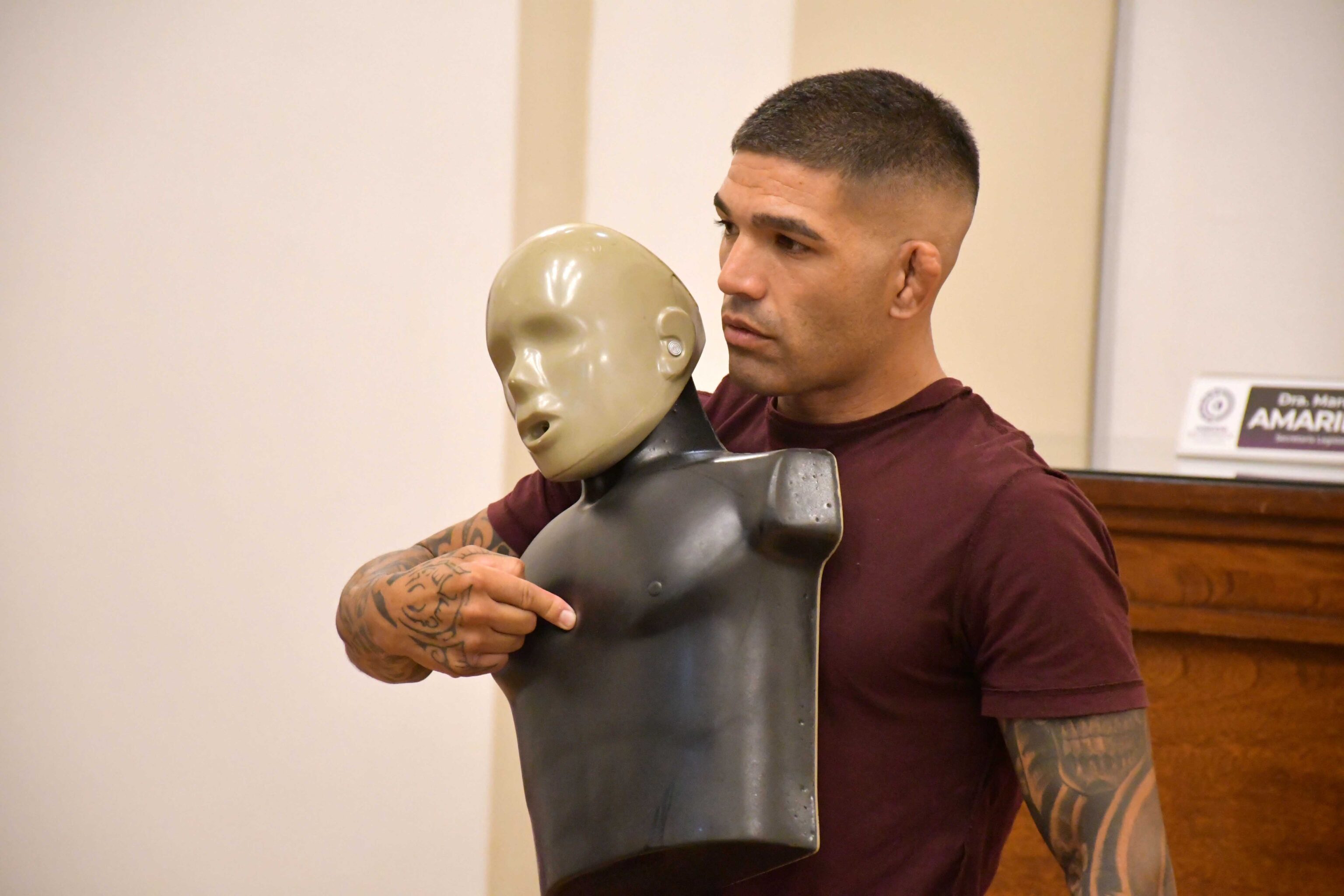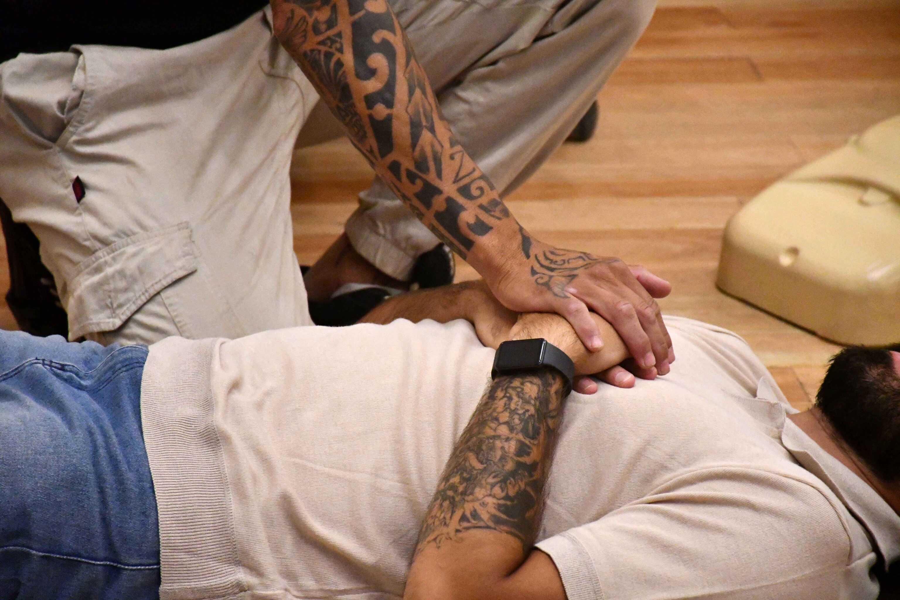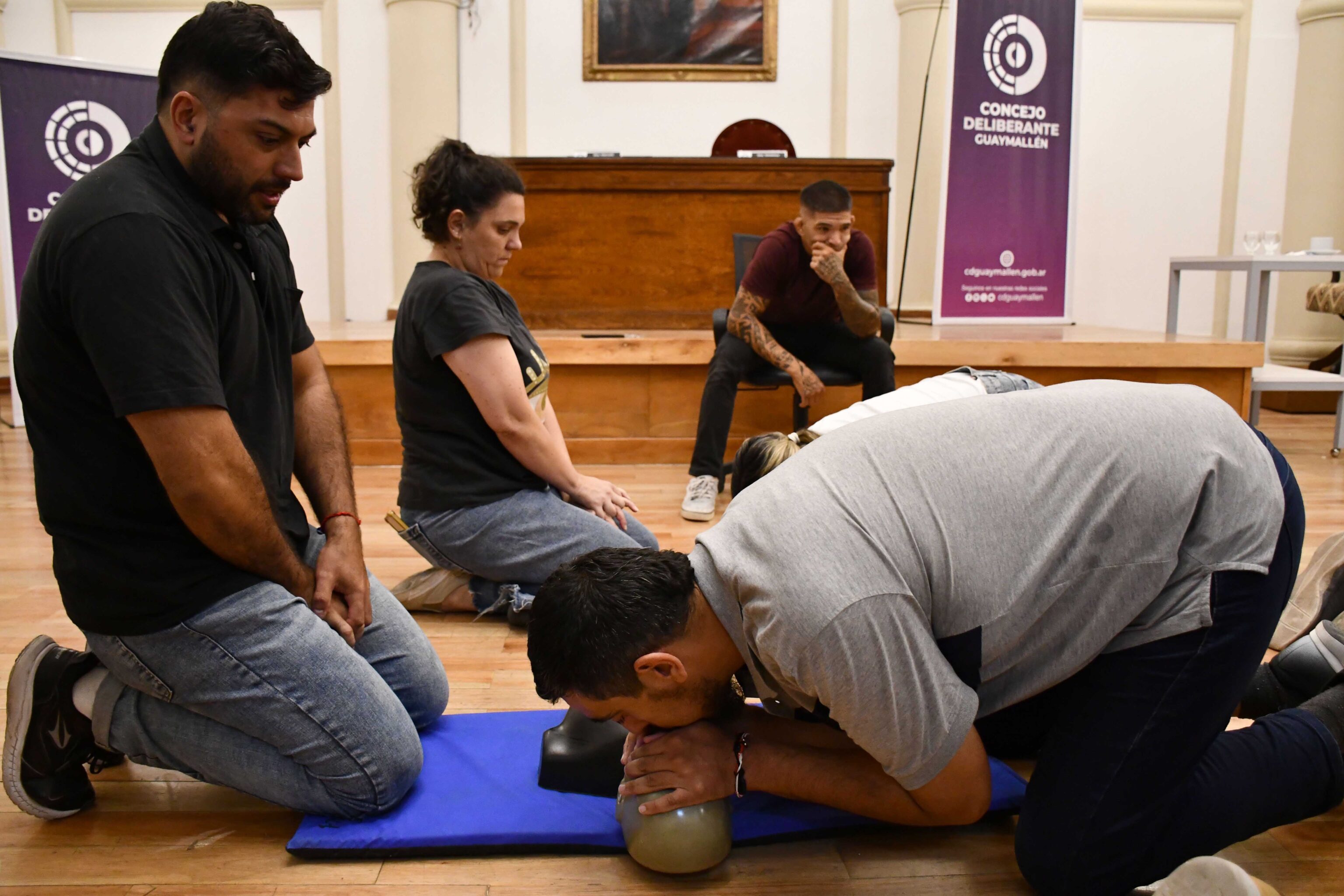 El primer encuentro estuvo orientado al reconocimiento, activación y maniobras fundamentales de vida. El profesor Juan Pablo Vallone abordó, de manera dinámica, temáticas como gestión del caos y liderazgo en la emergencia, mitos y realidades de este tipo de situaciones, actualización 2025 del protocolo y técnicas correctas de RCP (Reanimación cardiopulmonar) y maniobra de Heimlich (destinada a auxiliar a una persona en situación de ahogo). Además, los presentes pudieron realizar simulacros de ambas prácticas.